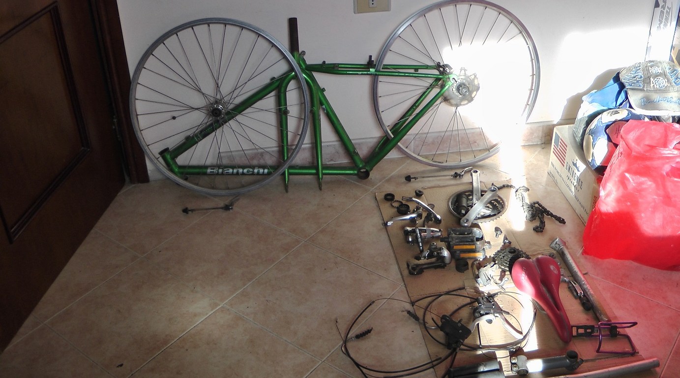 La Bianchi LT270 del ’97, completamente smontata e pronta per essere rimesssa a nuovo