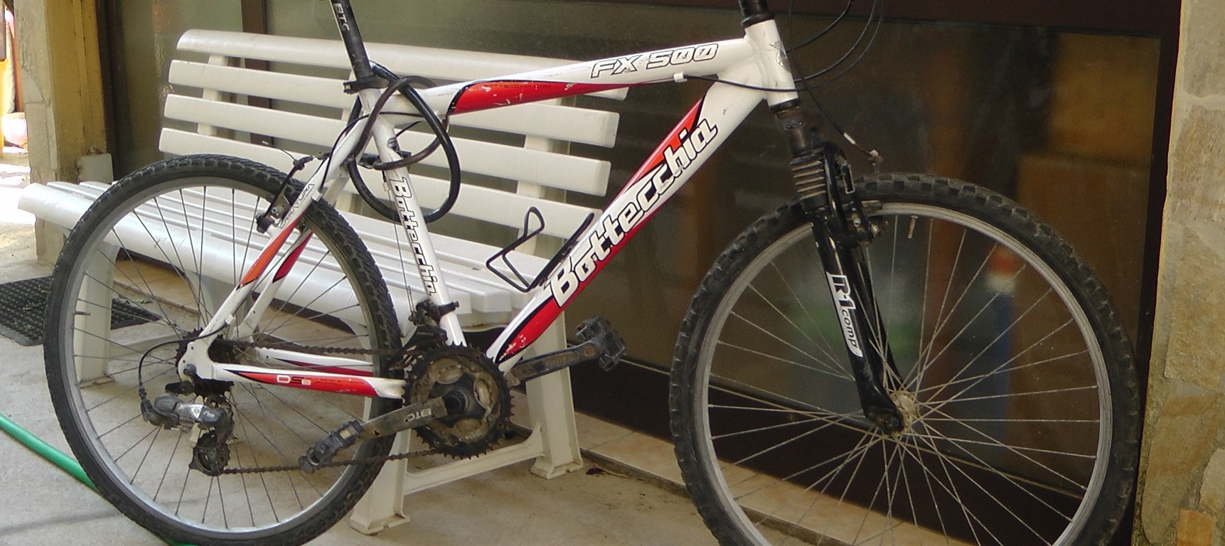 Bene, fatte queste premesse passiamo all’azione, ovvero mettiamo mano a una vecchia bici, trasformandola in un affidabile e leggero mezzo da escursione. In questo periodo, con alcuni amici della banda, stiamo lavorando sulle loro bici. In particolare, Alfredo ha deciso di entrare a far parte del nostro gruppo e affrontare escursioni “serie”, e per far questo ha scelto di migliorare la propria mtb, un modello base della Bottecchia che oggi consente di fare delle tranquille pedalate su strade dal fondo regolare, ma che noi trasformeremo in un mezzo che può affrontare qualunque tipo di escursione.