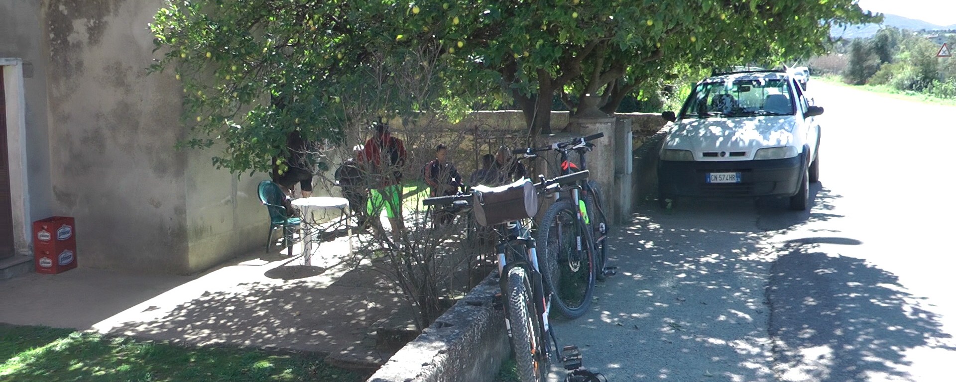 Si parcheggiano le bici appoggiandole al muretto di cinta, si entra per chiedere alle due anziane proprietarie una birra e un paio di bicchieri, e finalmente ci si siede all’ombra del grande albero per sorseggiare la propria meritata conquista!
