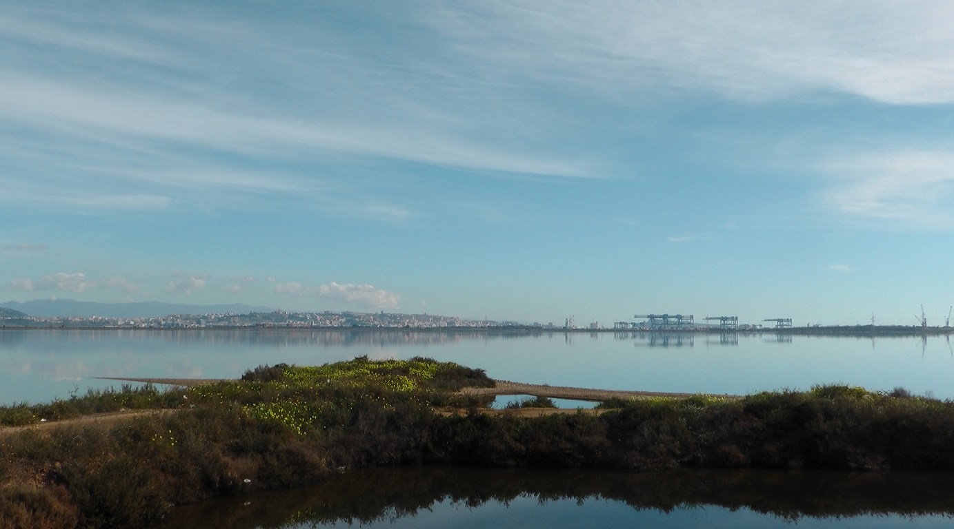 Seguendo una sterrata abbiamo quindi costeggiato la laguna, accompagnati alla nostra sinistra dallo splendido panorama della città di Cagliari coi suoi colli.