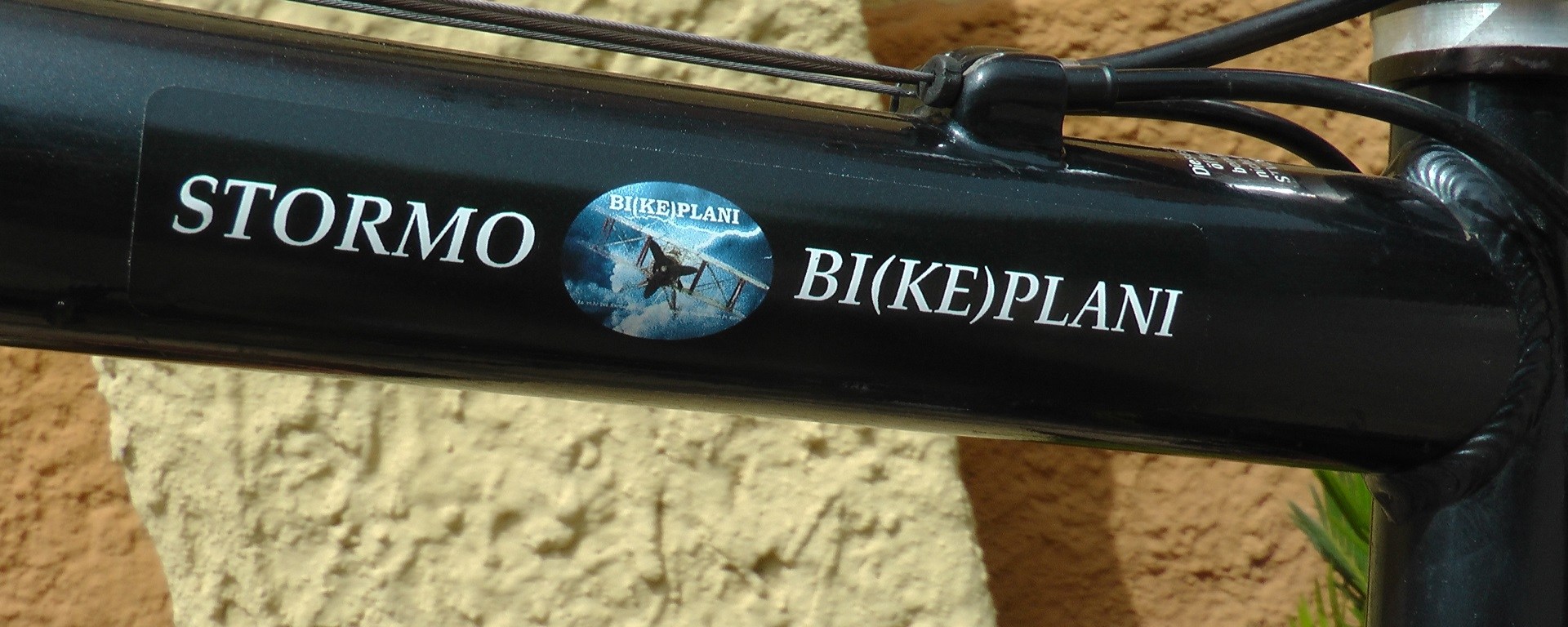 Chiaramente, un gruppo degno di questo nome (e figuriamoci quindi uno Stormo) non può non avere degli elementi distintivi, “identitari”, e figuriamoci se potremmo fare eccezione noi. Quindi, al momento abbiamo preparato degli adesivi col nostro logo da applicare alle mtb in allestimento (ma che daremo anche a chiunque ce li richieda). A breve poi saranno pronte delle magliette e delle felpe griffate col biplanaccio che ci contraddistingue, e anche queste saranno a disposizione di chiunque le voglia.