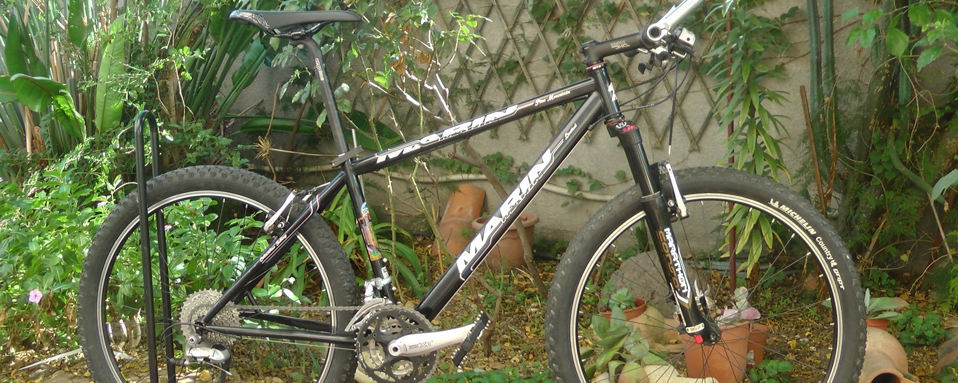 Innanzitutto due parole sulla Pine Mountain. E’ un modello che la Marin ha a catalogo fin da quando il marchio è nato, quasi quarant’anni fa. Ma oltre a questo, c’è una particolarità ancora più significativa che caratterizza questo modello: il suo telaio è sempre stato realizzato in acciaio, attraversando quelle stagioni in cui il marketing aveva definito questo materiale come obsoleto, buono giusto per farci barattoli. Oggi invece, per dire quanto il marketing infarcisca la nostra società di deleterie boiate, l’acciaio è stato rilanciato alla grande, dato che ci si è ricordati che possiede qualità meccaniche complessivamente superiori, specie per l’ambito ciclistico, rispetto ad alluminio e fibra di carbonio. Ovviamente il rilancio c’è stato anche sui prezzi, per cui un telaio come questo, in acciaio Columbus al Cromo-Molibdeno a spessore variabile, ha un prezzo di mercato che supera abbondantemente i 1.000€.
