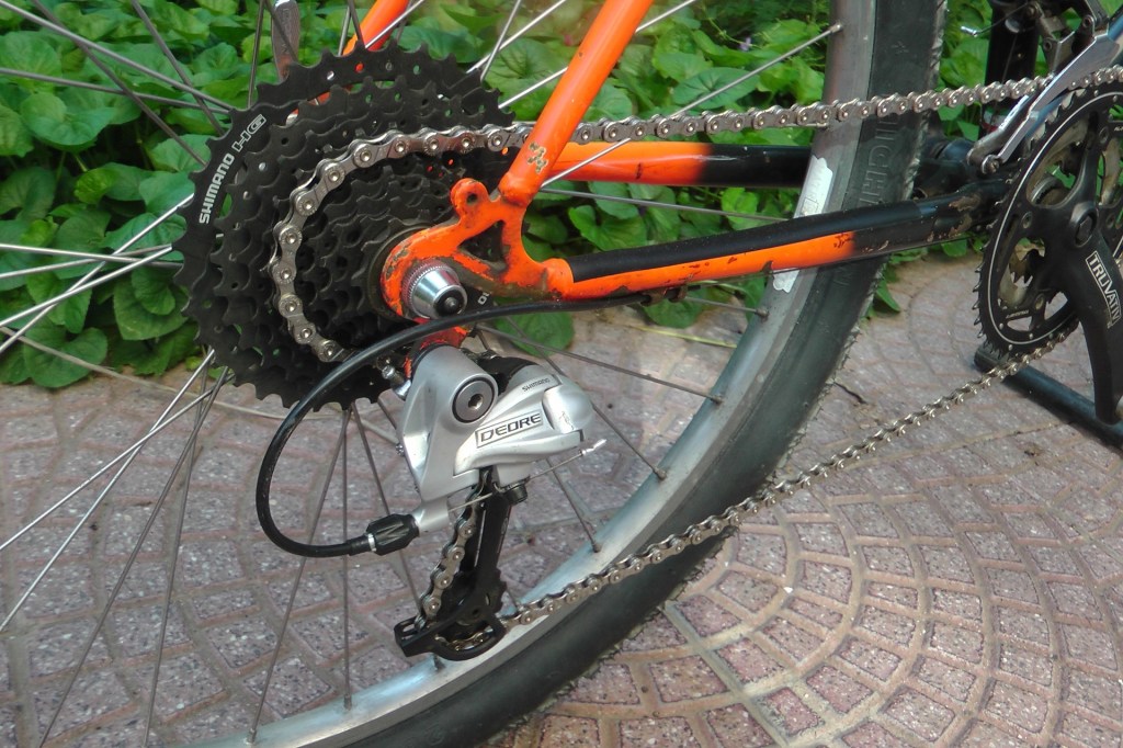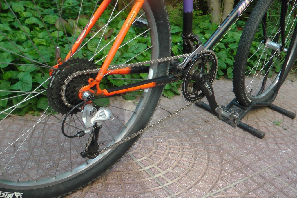 - la trasmissione è una 3x9v con corone 44-32-22 e pacco pignoni 9v 11-36 (l’abbiamo preferito all’11-32, cui Pietro potrà passare una volta migliorato ulteriormente il suo livello atletico).